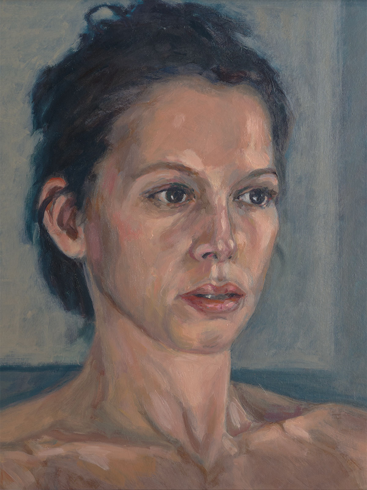 I volti dipinti da Federici sembrano colti durante un viaggio introspettivo, fissati in un momento di esitazione emotiva, dove lo sguardo tradisce un cammino fragile e incerto.