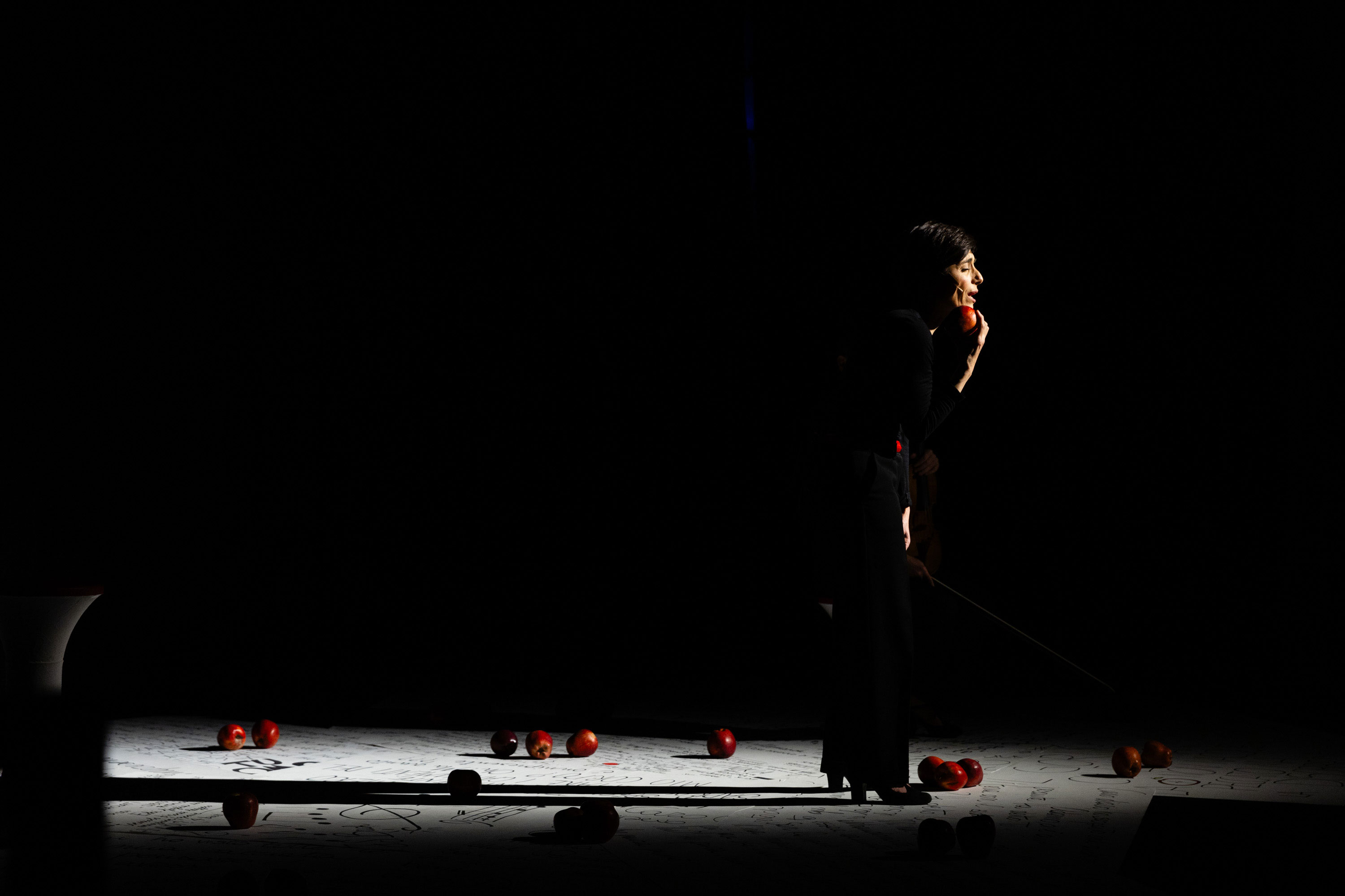 Questo spettacolo è un elogio alla disobbedienza femminile. Eva è voce in assoluto, riflette e pone domande. E’ voce che nomina per poter conoscere. E’ voce che si sospende nel vuoto, che resta in attesa. E’ voce che non si accontenta. Si interroga sul destino delle donne che verranno dopo di lei.